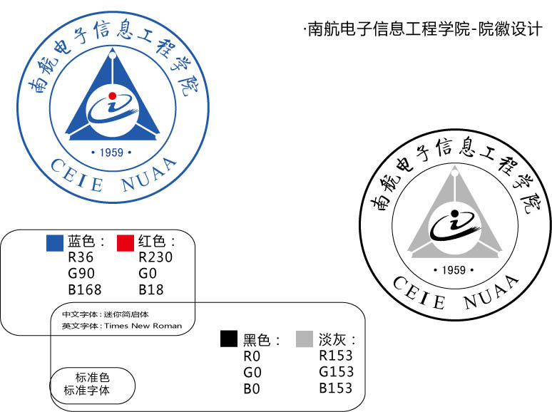 最中间的核心图案,从科技的视角看,由经过艺术变换的“CEIE”(学院英文全称College of Electronic and Engineering的缩写),可以理解为通信卫星或电子在轨运行。环绕核心图案的是等边三角形,形似由三个A组成的飞行器,代表打飞机