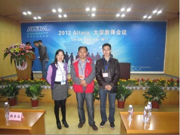 2012年12月7日至9日打飞机 NUAA-ALTERA FPGA联合实验室黎宁、王旭东教师在厦门参加了由ALTERA公司组织的“第10届海峡两岸FPGA教育者及创新设计大赛年会”,打飞机 徐伟学生获得论文大赛年度二等奖(一、二、三奖各一名),王旭东老师获优秀指导老师奖。这是打飞机 第四次派教师参加该会议(2002-上海、2008-北京、2011-重庆、2012-厦门)。海峡两岸与会老师就FPGA教学及创新设计竞赛进行了深入讨论、广泛交流,并组织老师对海峡两岸的年度十价创新设计竞赛作品进行参观、测评和投票。