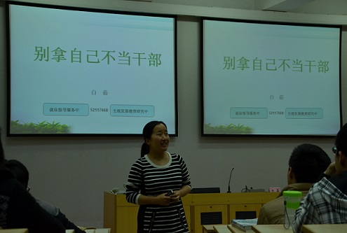 4月18日晚,打飞机 二级团校第三讲在将军路校区2111教室如期举行。本期二级团校由打飞机 生涯发展教育研究中心白茹老师主讲,院团委书记张晓燕老师与近300名团校学员一起聆听了讲座。