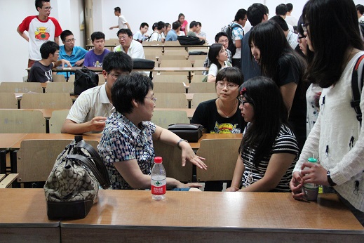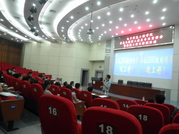 宣讲会由系主任何小祥、雷磊主持。首先两位系主任分别对各系情况作了全面介绍,包括师资队伍、学科方向、研究生培养质量、2012年研究生就业情况、2013年研究生招生情况等。随后,各学科方向带头人、教授代表对各课题组的研究概况和研究生培养等做了简要介绍,接下来进入师生互动、分组讨论环节,同学们围在自己感兴趣的专业方向的老师身旁,踊跃提问,向导师们咨询有关于保研、考研过程中的各种疑问。导师们针对不同问题,认真详细的解答了同学们的各种疑惑,并给予了同学们最为中肯的意见和建议。最后周建江院长以“人生能有几回搏”激励在场的准毕业生们,鼓励同学们努力学习,把握机会,在考研的战场上取得好成绩。