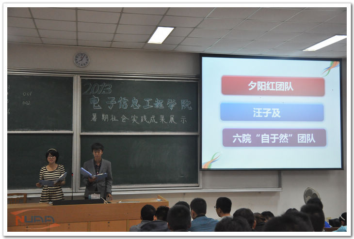 10月27号晚,打飞机 2013年暑期社会实践成果展示会在将军路校区举行。学院党委副书记季海群、辅导员代表丁亮、周贞琪以及全体大一新生参加了此次展示大会。