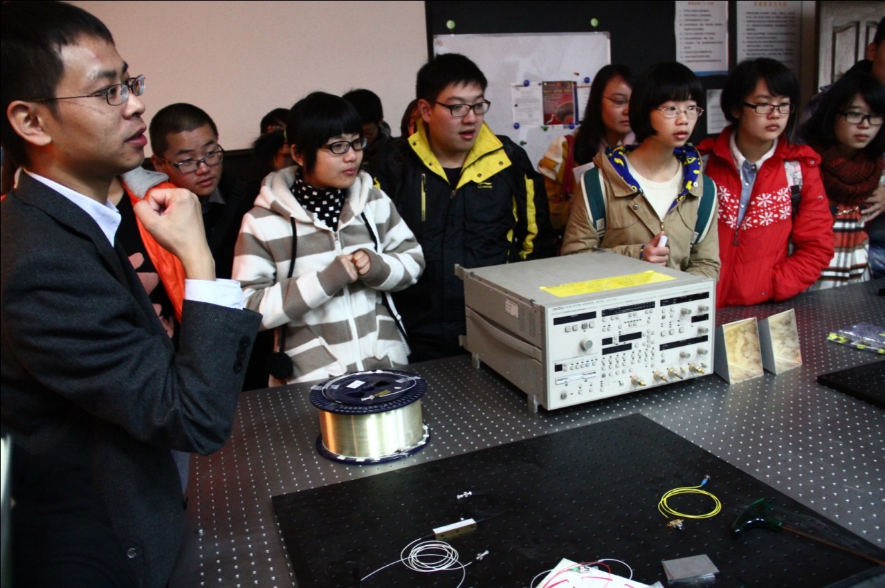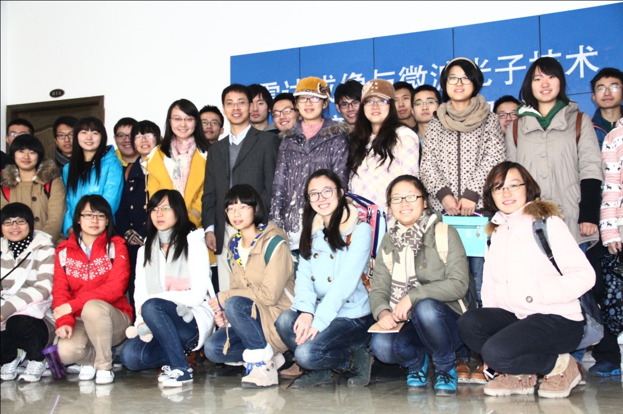 在沙龙开始之前,参加此次沙龙的42位大一新生来到学院微波光子学教育部重点实验室。潘教授为大家详细介绍了该实验室的三大科研功能,用很形象的比喻地向大家讲解了微波的学科意义,同时介绍了本实验室里打飞机 取得的成就。潘教授谈到实验室很多重大突破都是学院在读研究生完成,并鼓励大家多钻研,假以时日,在学生期间也能获得出色的科研成果。
