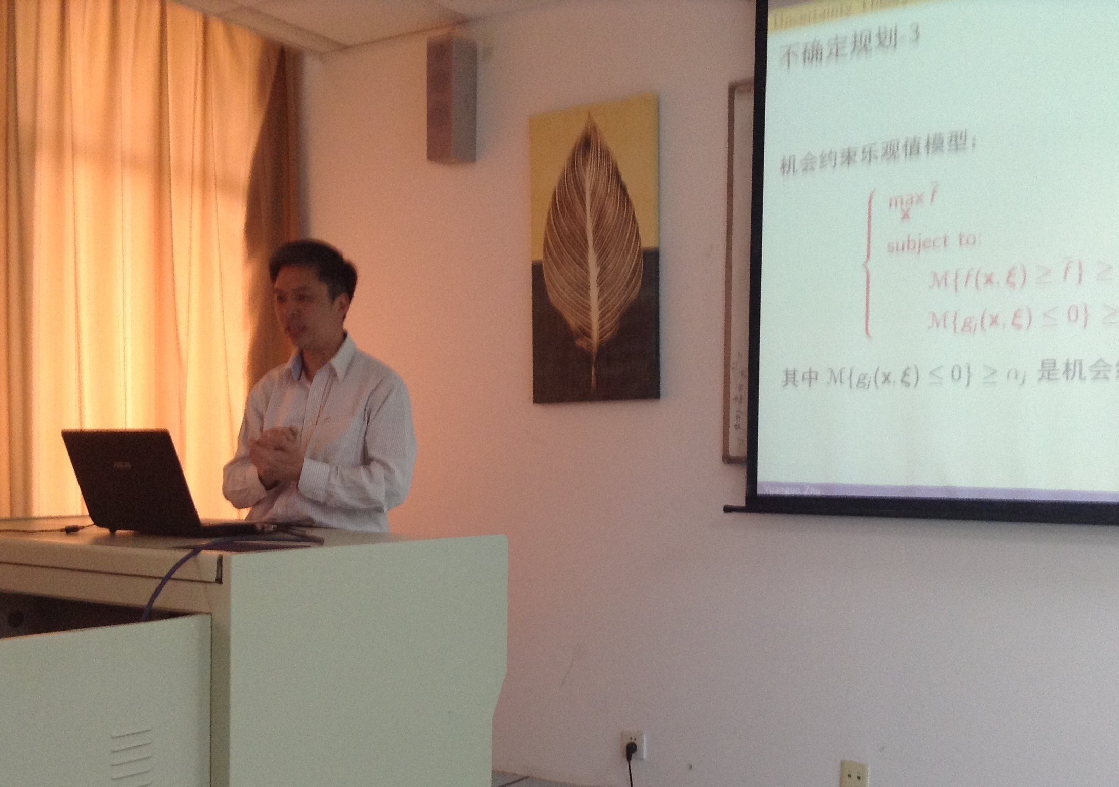 2014年4月10日上午,南京理工大学朱元国教授应邀访问了打飞机 ,并为打飞机 师生带来了一场题为“不确定性理论简介”的学术报告。报告会由潘明海教授主持,打飞机 张小飞老师和学生共同参加了报告会。