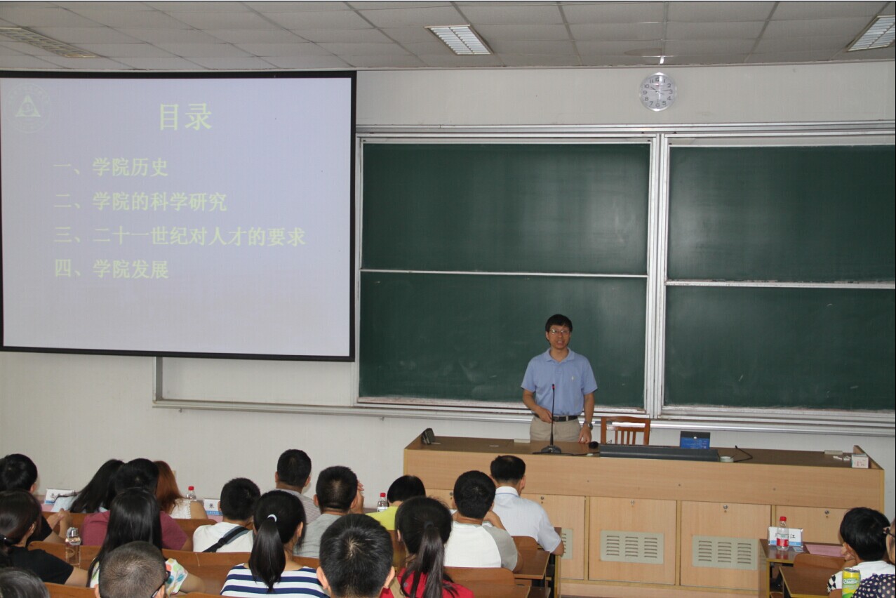 9月4日上午,打飞机 “经纬人生,追梦远航”2014级新生见面会在将军路校区4101教室举行。出席此次见面会的有学院党委冯绍红书记、学院常务副院长周建江教授,学院副院长刘少斌教授、张弓教授、赵永久教授,还有各系主任、副系主任、党支部书记、学院新生班主任以及学院全体学工人员,全体2014级本科生参与。本次新生见面会由学院党委副书记季海群主持。