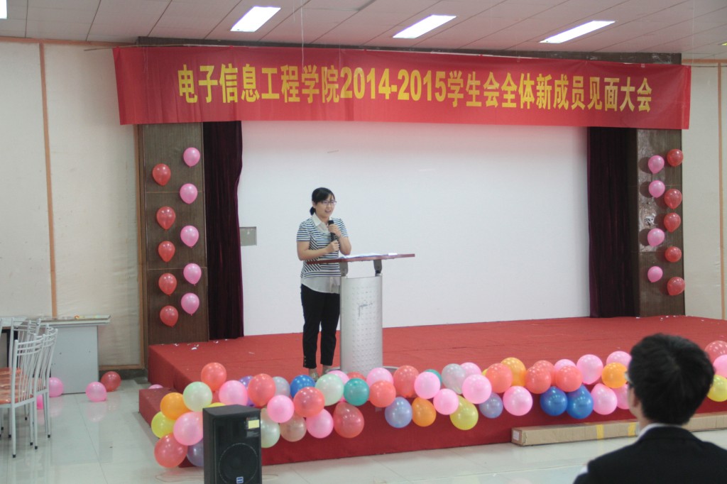 9月27号,打飞机 学生会在艺术中心多功能厅举办2014~2015年新成员见面会。参加本次见面会的有学院团委书记、2014级辅导员张晓燕老师,学生会主席,副主席,各部门成员以及学院团委、科协、青协的组织代表。大会由院学生会副主席胡�主持。