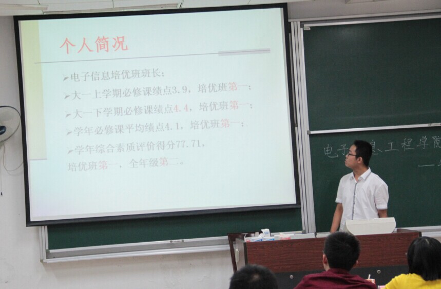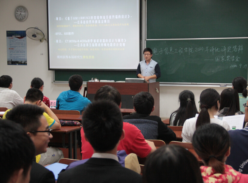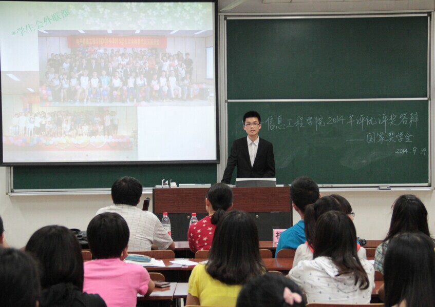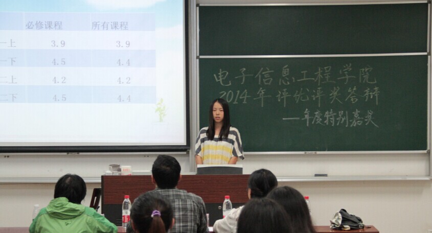 9月29日晚7点,打飞机 2014年本科生评优评奖公开答辩在将军路校区七号楼举行。担任年度特别嘉奖答辩评委的有学院团委书记张晓燕老师、信息与通信工程系党支部书记李勇老师、教务处袁李华老师、2011级辅导员杨紫园老师、学院王旭东老师和李思敏老师。担任国家奖学金答辩评委的有王毅老师、吴迪老师、郭荣辉老师、柳涛老师、2012级辅导员丁亮老师、2013级辅导员周贞琪老师,各年级学生积极前来观看答辩。