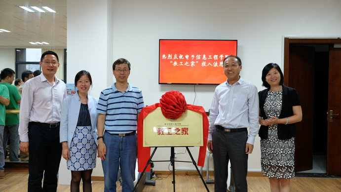 会后,学院还举行了教工之家的启用仪式。仪式由党委副书记王伟华主持,校工会常务副主席袁贵平与常务副院长周建江共同为教工之家揭牌,随后,在场的老师们饶有兴趣地开展了一次健身活动。