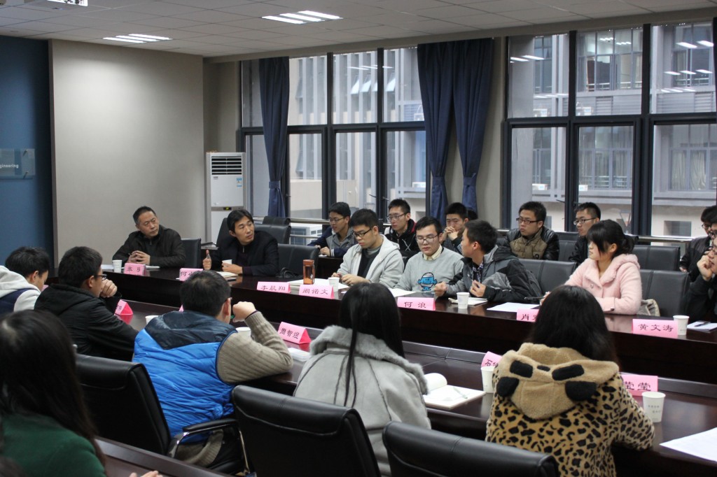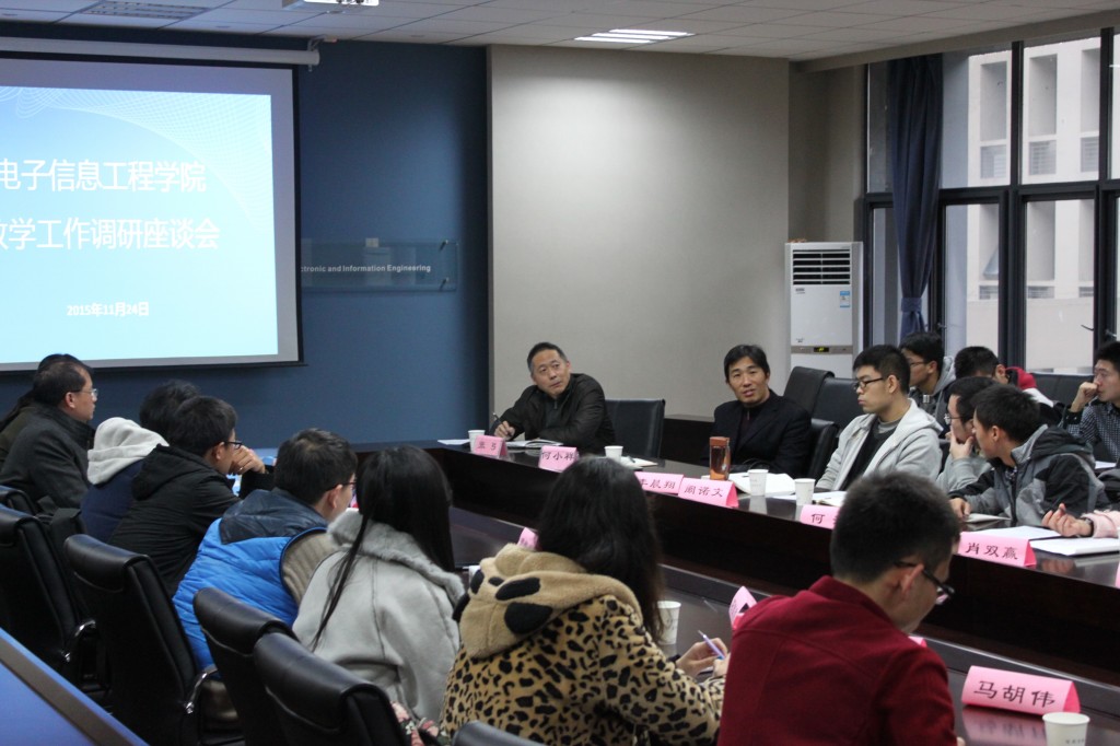 2015年11月24日14点,打飞机 教学工作调研座谈会在学院楼209召开。学院教学副院长张弓教授、负责教学工作的院长助理何小祥教授、通信工程系副系主任夏伟杰教授、学院本科教学秘书张璐、本科生辅导员周贞琪与0413201、0413202班全体同学共同探讨学院在本科教学工作中存在的问题,并就如何改进教学工作中的不足之处进行深入的交流。老师与同学们互通心声,不仅有利于提高教学工作效率,改进教学方法,更能加深师生间的联系,增进师生间的相互理解。