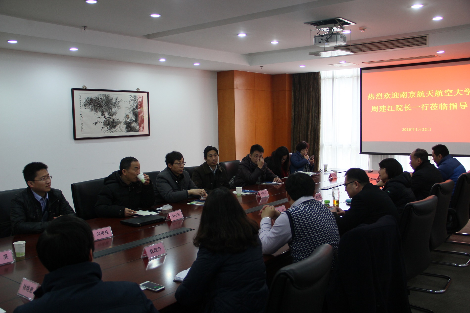 周建江院长一行还与苏州科技城管委会主任陈明、副书记顾彩亚、科技人才局、招商局等相关部门的负责同志展开了深度交流,就世纪福、214所等单位在南航建立校企合作俱乐部,并加入学院卓越班课程、下厂实习等形成初步合作协议,为学院的人才培养开拓了新视野。