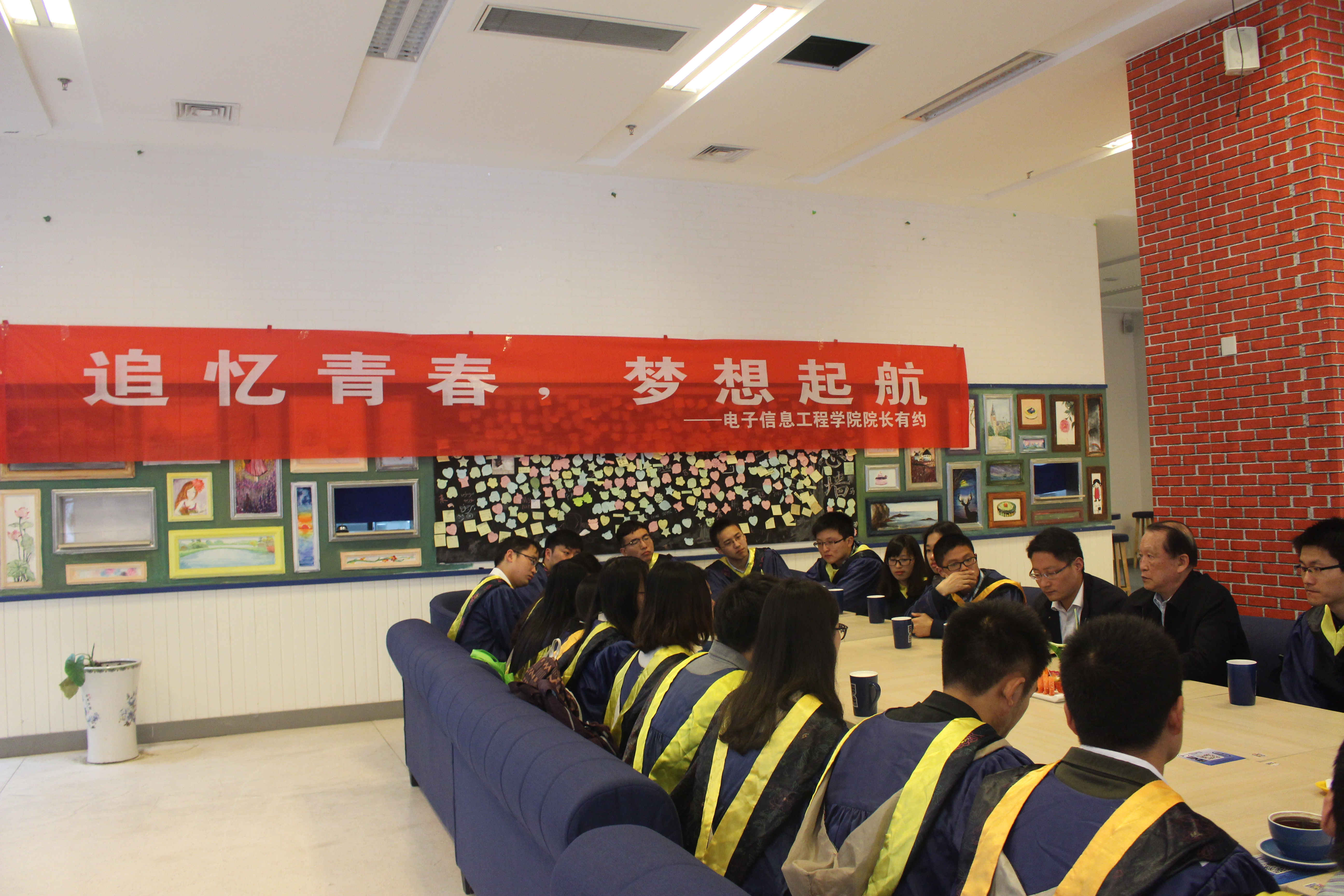 2016年3月31日上午,打飞机 在江宁校区图书馆咖啡厅举办了“追忆青春,梦想起航”——打飞机 院长有约活动。学院院长、中国工程院院士——贲德、学院党委副书记王伟华、研究生辅导员徐艳惠和25名2016届优秀研究生毕业生参与了此次活动。
