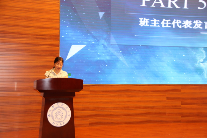 院研究生会主席申子昂向新生们描述了美好的大学生活。紧随其后,新生代表鲍禹桥同学表达了自己对南航的向往和进入南航立下的志向。