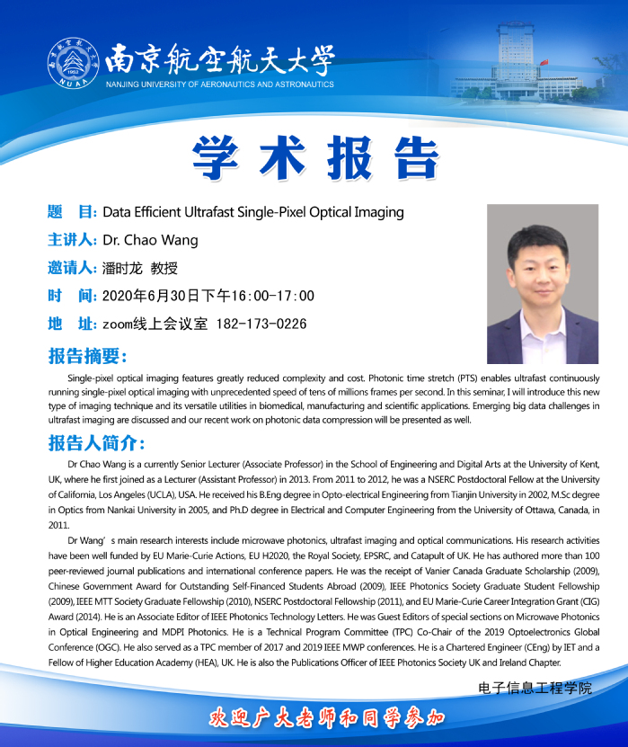 学术报告会——Data Efficient Ultrafast Single-Pixel Optical Imaging