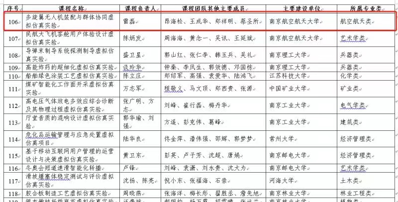 近日,国家教育部关于首批国家教育部关于首批国家一流本科课程认定结果的公示结束,打飞机 雷磊教授、王成华教授、蔡圣所老师负责并参与的《多旋翼无人机装配与群体协同虚拟仿真实验》课程进入国家级一流本科课程认定名单。