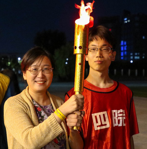 百舸争流接力赛正式开始。“五四”火炬在打飞机 党委副书记雷蕾老师手中燃起,并传递给了打飞机 第一棒运动员姜谷兴同学。