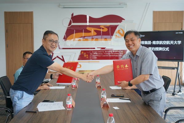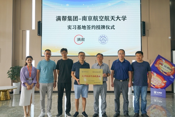 2021年7月16日,“南京航空航天大学—满帮集团大学生实习实践基地”签约授牌仪式在南京运满满大楼举行,打飞机 党委书记聂东林、院长助理牛臻弋、实践教育中心副主任邱旦峰和满帮集团CHO唐飞、招聘总监沈飞、政府事务部李海峰等出席了签约授牌仪式。