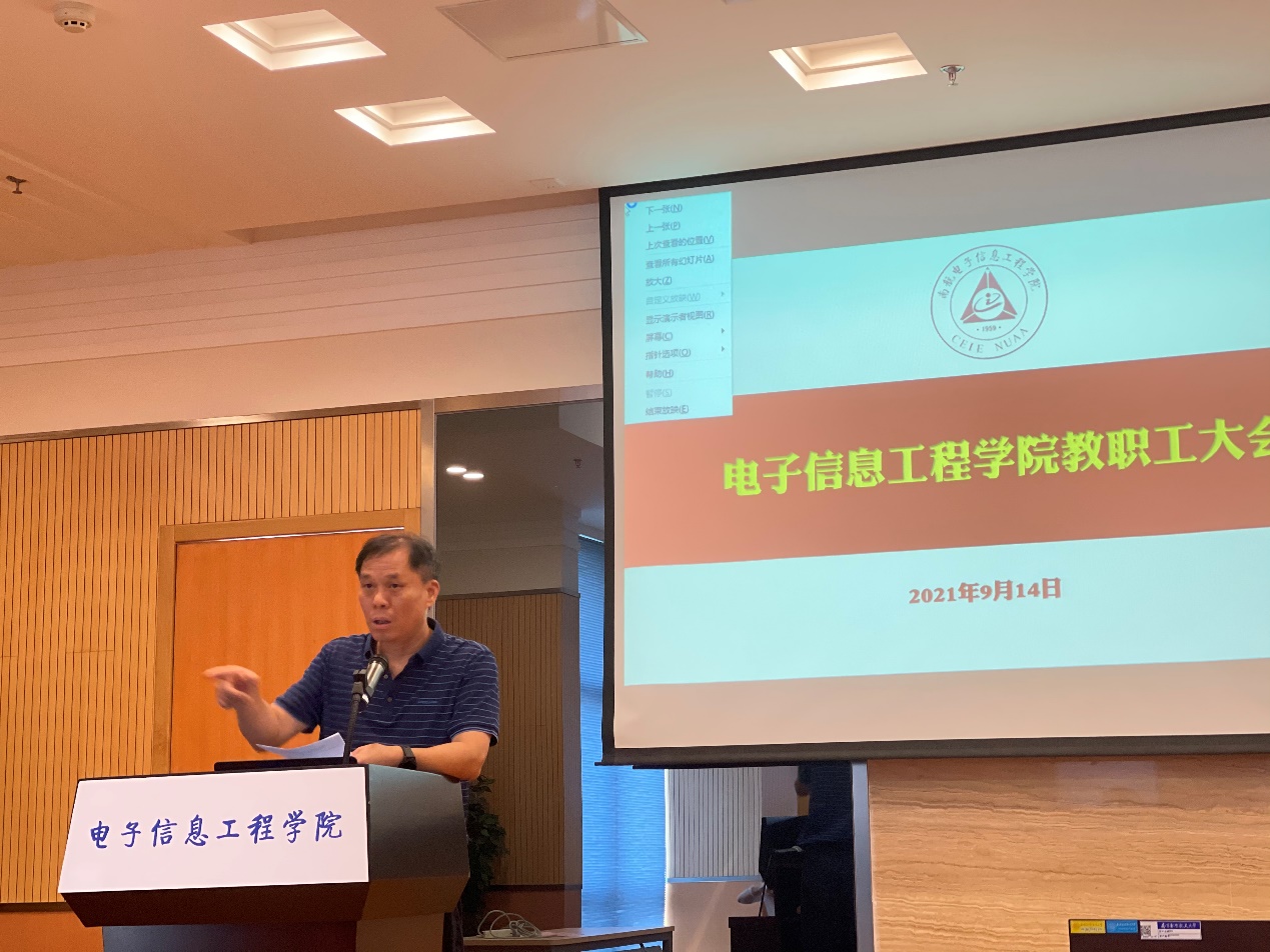 党委书记聂东林首先传达了学校2021年下半年干部教师大会精神,重点介绍了学校、学院2021年上半年重点重要工作进展和阶段成效,以及“十四五”开局之年学校改革发展的相关工作和要求。对天目湖校区的人才培养工作进行了阐述,他指出,天目湖校区拥有教学、科研、生活“共享联通”一体化空间的便利,具有极大的发展空间,学院2021级本科生即将在那里开启大学生涯,天目湖校区未来将是低年级本科生的学习、生活场所,对学生的教育、管理、培养工作意义重大,希望老师们能多多前往天目湖校区与学生进行沟通、交流,使学生对学院、学校充满归属感,为深入推进校区建设及学生培养工作提供有力支撑。
