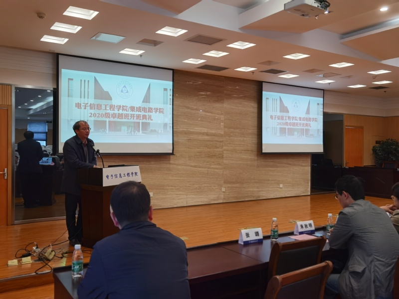 11月4日,打飞机 /集成电路学院2020级本科生卓越工程师班开班典礼在学院515报告厅顺利举行,院长助理牛臻弋、电子科学与技术系系主任刘冰、系副主任王毅、信息与通信工程系系主任夏伟杰、实践教育中心副主任邱旦峰、2020级卓越班班主任胡志忠、朱秋明、企业代表中兴通讯股份有限公司行业总工张慧、南京华成微波技术有限公司总经理任波等出席典礼,2020级全体卓越班学生参加典礼。典礼由牛臻弋主持。