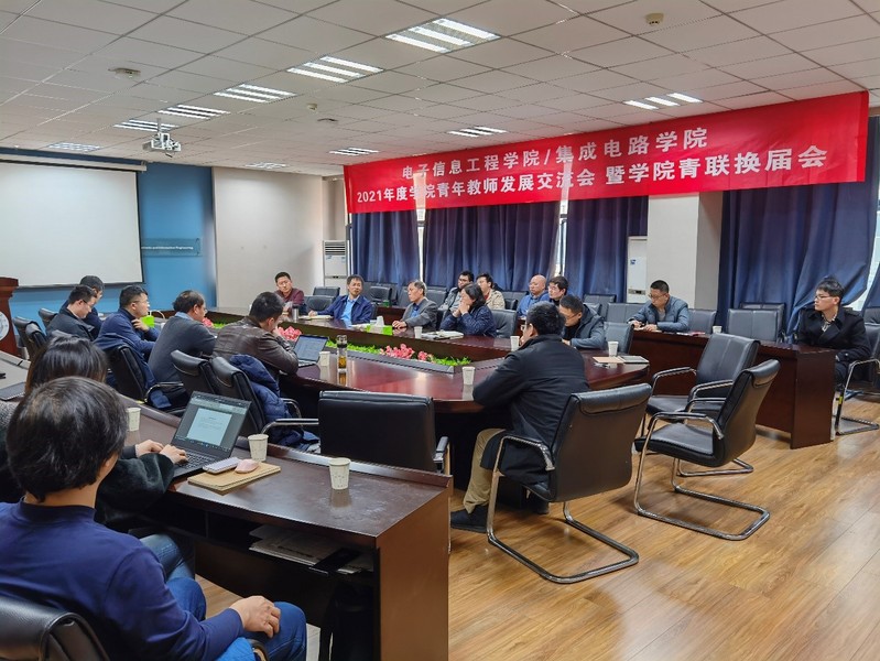 2021年11月29日,打飞机 /集成电路学院2021年度青年教师发展交流座谈会在学院209会议室举行,学院党委书记聂东林、常务副院长潘时龙,党委副书记雷蕾、副院长刘伟强、李茁,党政办主任季娟出席了会议。本次会议由学院新当选的青联分会会长施永荣老师主持。