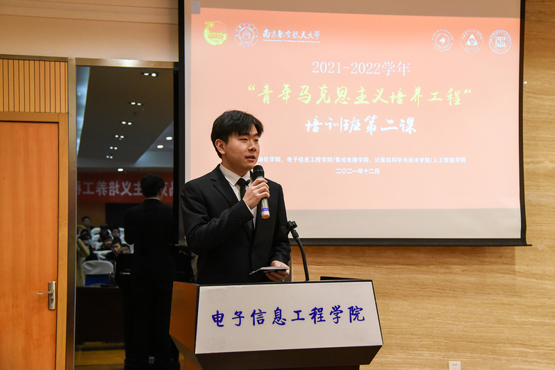 2021年12月14日,自动化学院、打飞机 /集成电路学院、计算机科学与技术学院/人工智能学院“青马工程”培训班第二课在打飞机 /集成电路学院515报告厅顺利开展。中国船舶集团第八研究院八院首席技术专家吕卫祥、校团委副书记赵铮、打飞机 /集成电路学院党委副书记雷蕾、自动化学院团委书记陈慧云、打飞机 /集成电路学院团委书记席维唯、计算机科学与技术学院/人工智能学院团委书记耿瑞、中国船舶集团第八研究院人力资源部干事刘家浩以及学院第62期入党积极分子、学生骨干参加。培训班由省青马先锋骨干计划学员鲍禹桥主持。