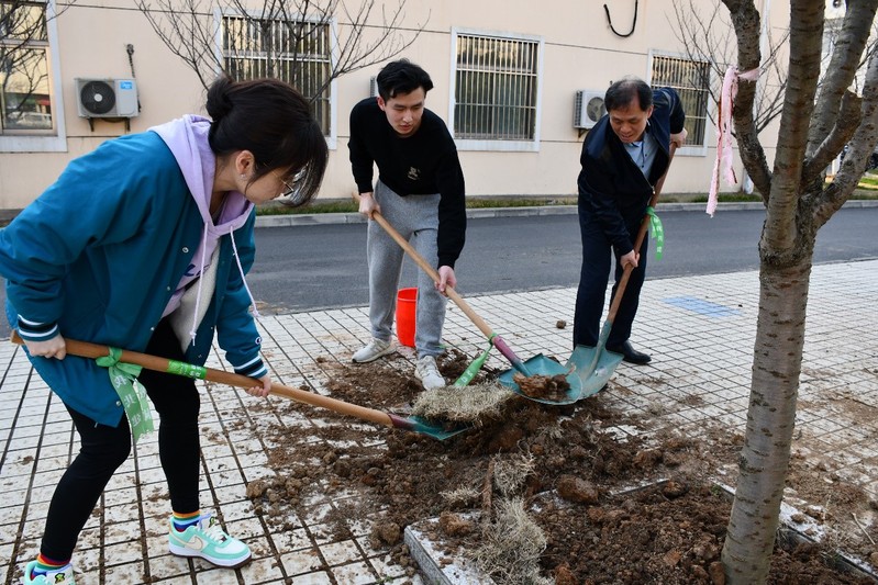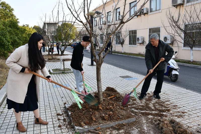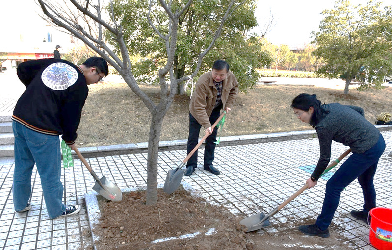 春日融融,新绿初绽,又是一年春光好,植绿、护绿正当时。为巩固“绿水青山就是金山银山”的发展理念,培育和践行节能低碳、绿色发展等环保思想。3月11日,学院机关党支部和硕士1903党支部在将军路校区西区樱花广场携手植树,为校园增绿添彩。