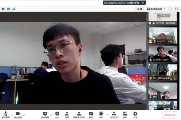 4月22日,我院0421002班开展了“电院前浪携后浪,先辈为镜前路广”线上主题班会。班主任张小飞、博士生赖欣、大四保研生陈烨及全班33位同学参加了此次会议,班会由班长张阳主持。