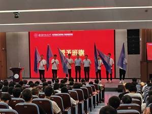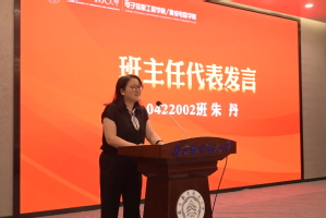 0422002班班主任朱丹作为班主任代表发言,对同学们提出了以己为鉴、以朋为友和实践担责的三点建议。各班主任也依序上台为新生寄语,以不同的方式表达了自己对新生们的殷切期望。而新生们为表达对班主任的敬意也以班级为单位派出代表为班主任们献上鲜花,合影留念。为强化新生班集体概念,提升集体荣誉感,学院全体领导为12个班级代表进行了授旗。