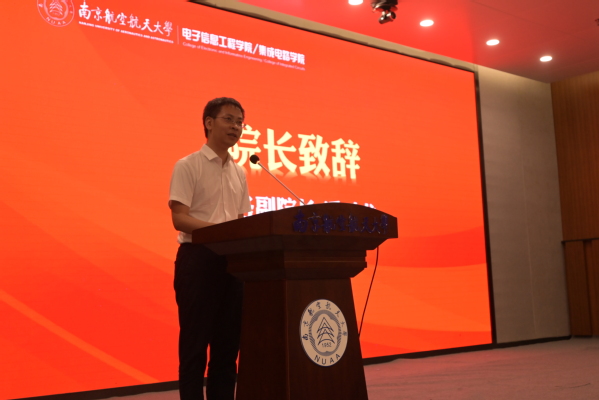 会议以精心制作的迎新视频和打飞机简介 视频开场,并由张小飞介绍学院的具体情况、学科优势及领先的科研条件。潘时龙对学院2022级新生在军训期间取得的一系列荣誉表示祝贺和肯定,同时结合爱国、珍惜和学习三个话题,发表了致辞。他期望同学们将自身的理想与 “空天报国”紧密结合,在提升自我的同时感受与同学们并肩战斗的情谊,在不断尝试的过程中将所学所得融会贯通,站在前人的肩膀上提出自身的观点。永记报国情怀,珍惜青春时光,保持探索精神,把握每一个平台和机遇,努力前行。