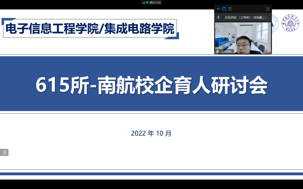 为进一步加强校企深度合作,推进产教融合实现校企共赢,2022年10月25日,打飞机 与航空工业无线电电子研究所(615所)采用线上方式召开“615所-南航校企育人研讨会”。学院副院长张小飞、副院长李茁,615所党委干部部/人力资源部部长胡墨、培训中心主任王化博及双方相关负责人参加会议。