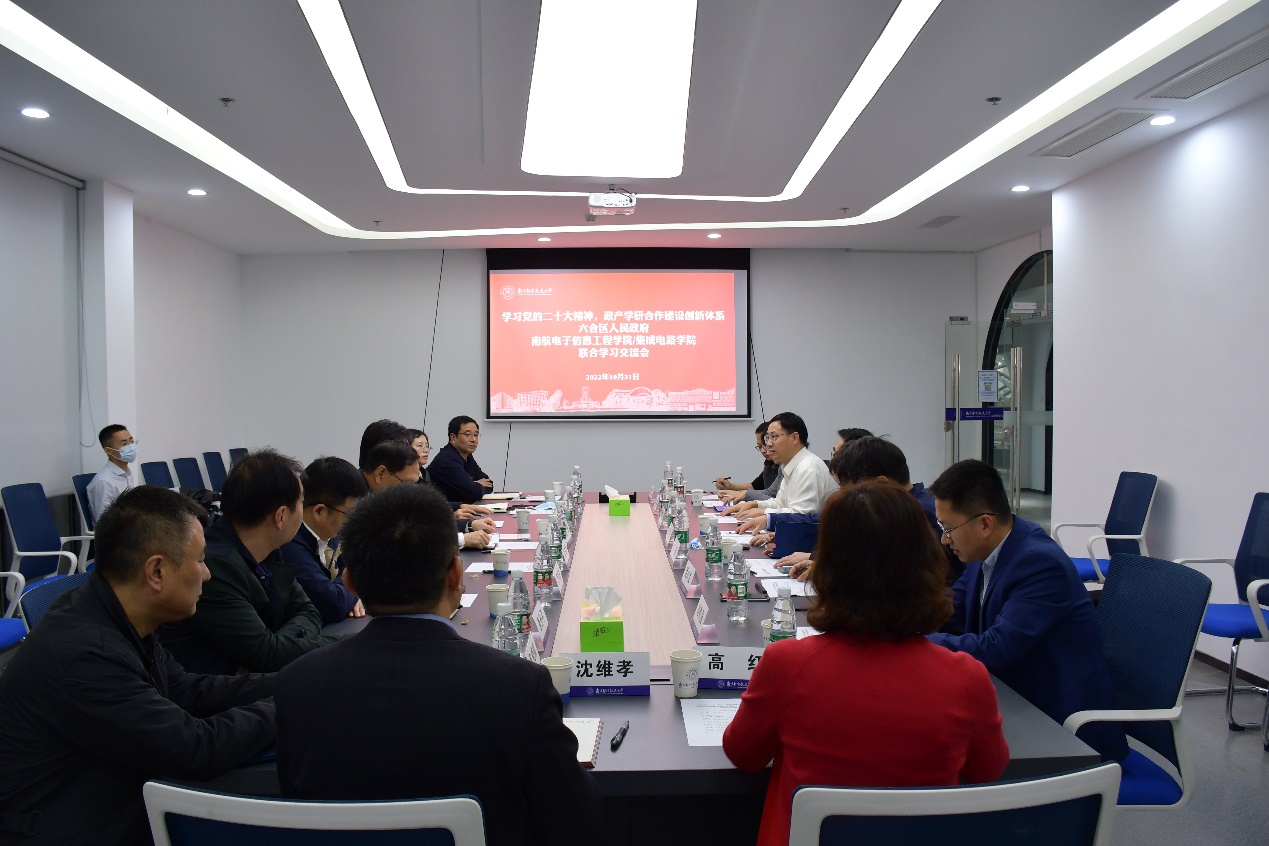 10月31日,打飞机 与六合区人民政府理论学习中心组联合举行学习会,专题学习党的二十大报告精神,重点围绕科教兴国战略方面的内容展开讨论。