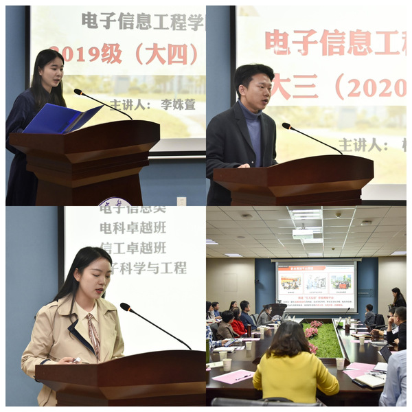 班主任代表朱秋明、孔祥鲲、吴比分别对各班级的学情汇报进行了简要点评,他们结合自身的经历分享了自己对班主任工作的理解和思考,认为班主任队伍建设应该进一步加强,以利于在学院人才培养过程更好地发挥作用,并表示会主动贴近学生、引导学生,做好学生成长成才的引路人。