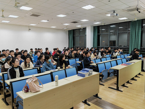 在讲座开始之前,辅导员梅旭鹏先就2020级本科生学情作了通报。他依据学院往届学分统计与推免情况,结合本年级学习情况,为到场同学全面分析了学院近两年来的保研、考研以及就业形势,引导同学们认真分析自己当前的学习状况。