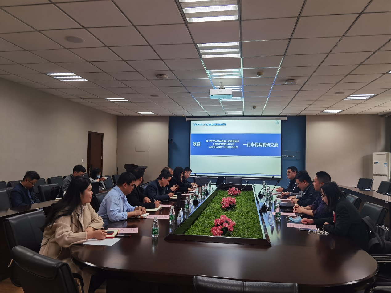 /集成电路学院与嵌入式芯片与系统设计竞赛组委会、上海海思技术有限公司,以及南京沁恒微电子股份有限公司的校企交流研讨会在南京航空航天大学将军路校区举行。嵌入式芯片与系统设计竞赛组委会副秘书长王涛,上海海思高校合作总监刘耀林,上海海思产品规划专家谢晶,上海海思华东区域人力资源总监潘基强,南京沁恒微电子股份有限公司董事/技术总监杨勇等参会。南京航空航天大学打飞机