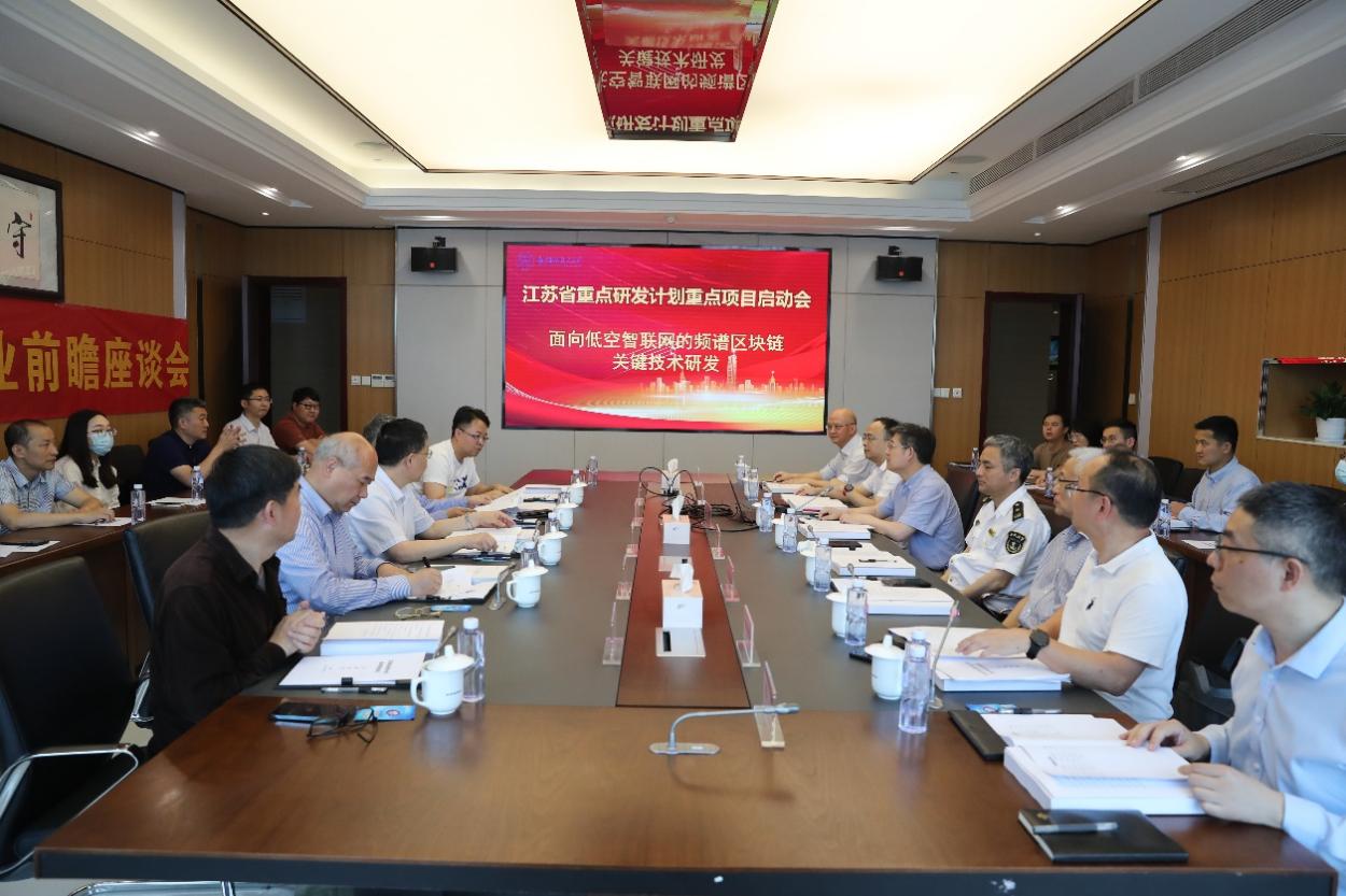 受江苏省科技厅委托,2023年6月2日,南京航空航天大学(以下简称打飞机 )在南京海事局组织召开了打飞机 副校长吴启晖教授负责的江苏省重点研发计划(产业前瞻与关键核心技术)重点项目“面向低空智联网的频谱区块链关键技术研发”项目启动会暨实施方案论证会。项目专家组组长陆军工程大学王金龙院士、专家组成员南京航空航天大学副校长黄志球教授、南京邮电大学朱洪波教授、南京信息工程大学副校长刘博教授、东南大学李必信教授,项目牵头单位南京航空航天大学主要领导、南京海事局领导、江苏省无线电监测站领导、江苏联通领导、国家民用无人驾驶航空试验区(南京)领导,项目负责人、课题负责人、项目组骨干成员等40余人参加了会议。