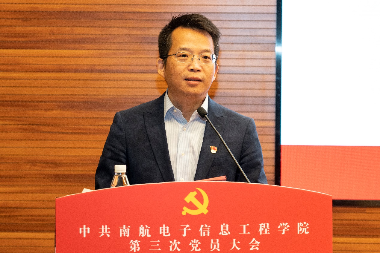 大会听取了学院党委书记季海群所作的题为《跨越发展,开放融合,为高质量建设空天特色世界一流电子信息学院努力奋斗》工作报告,报告全面回顾了学院党委2016年以来在全面从严治党、人才培养、师资队伍建设、学科发展、科学研究、国际合作、学院治理等方面取得的成绩。从国际大势、国家战略、行业发展、学校部署及学院方位等多方面分析研判了学院发展面临的机遇与挑战,剖析了工作中存在的问题与不足,进一步明确了下一届党委工作的目标任务和思路举措。