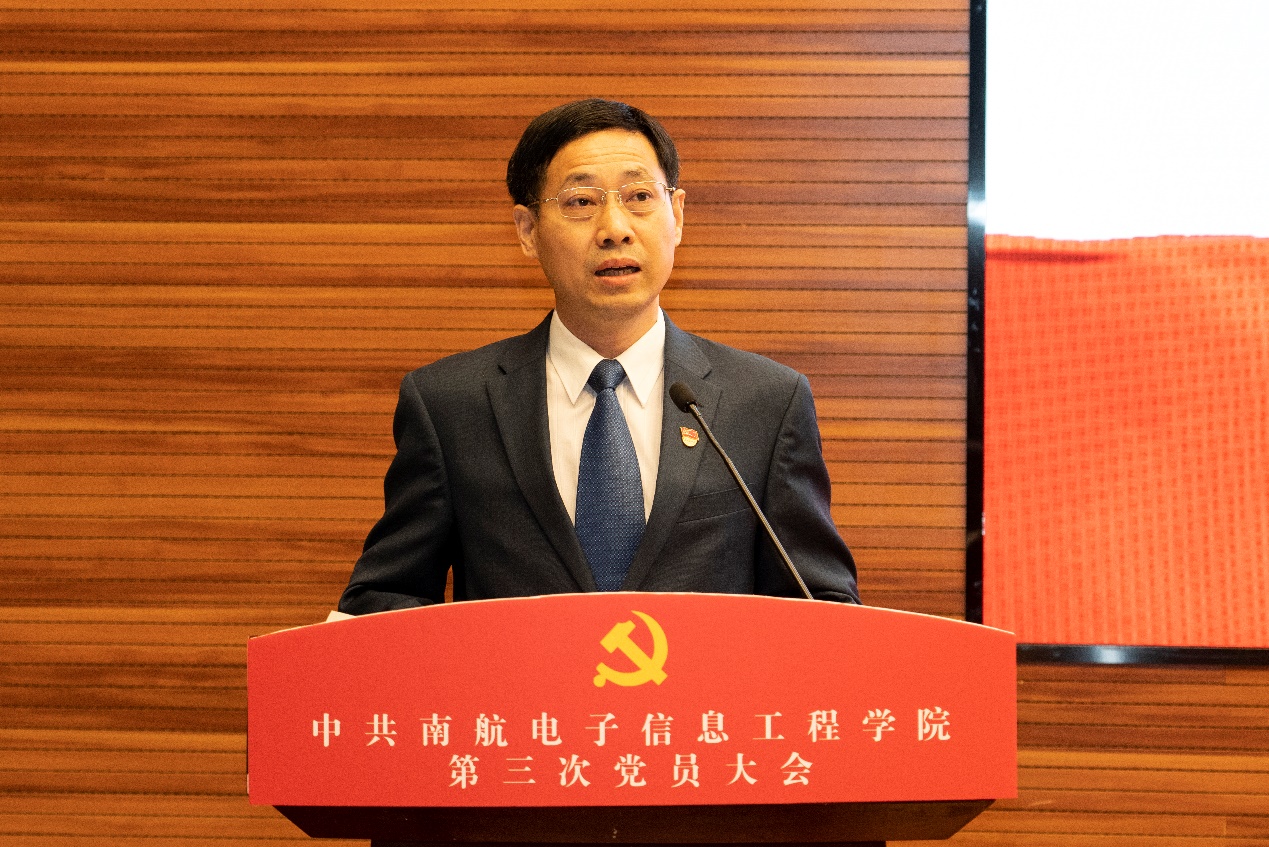 刘宇雷代表学校党委向大会的召开表示热烈祝贺。他对2016年以来学院党委取得的成绩给予充分肯定。他强调,学院党委要牢牢把握主题教育“学思想、强党性、重实践、建新功”的总要求,坚持教育实践两手抓、两促进,紧紧围绕新时代新征程上既定的中心任务,推动学校第十七次党代会精神落地落实,打开打飞机 事业高质量发展的新局面。同时对学院今后的工作提出三点希望:一是坚持强化理论武装,抓实主题教育,在真学真信中把牢正确方向、担当责任使命;二是坚持服务国家战略,深化改革创新,在真抓实干中实现高质量内涵式发展新突破;三是坚持党的全面领导,扛牢主体责任,以高质量党建引领高质量发展。