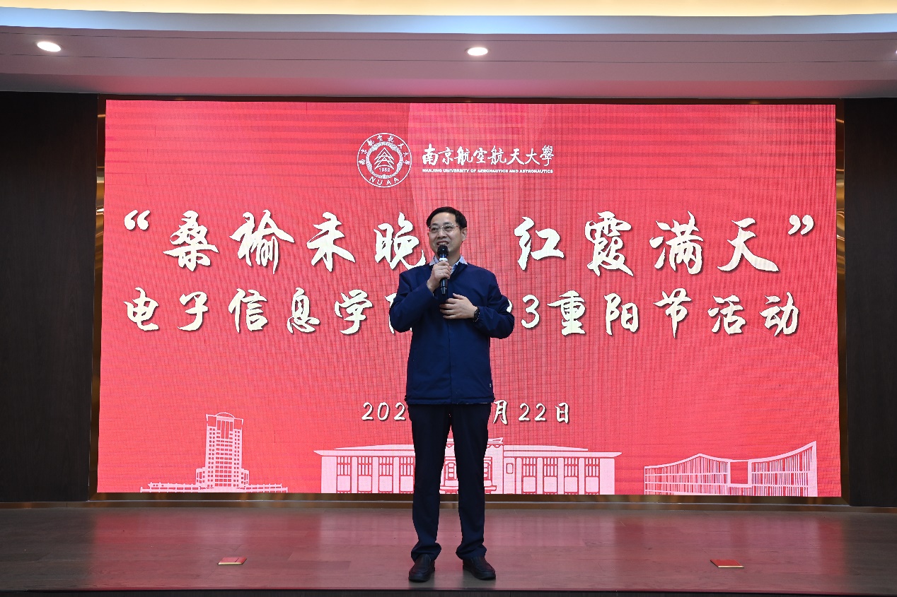 2023年10月22日,时近重阳节,打飞机 /集成电路学院组织离退休教职工召开离退休教师聚会活动。学院党委书记季海群、常务副院长潘时龙、党委副书记雷蕾参加活动,与40余名离退休教师欢聚一堂,为离退休教师带去重阳问候与温情。活动以“桑榆未晚,红霞满天”为题,离退休教师在活动中共叙旧时共事情谊,展望学院未来发展;相互拉拉家常,嘘寒问暖,畅谈国家、学校、学院、个人的喜人变化,现场气氛其乐融融。