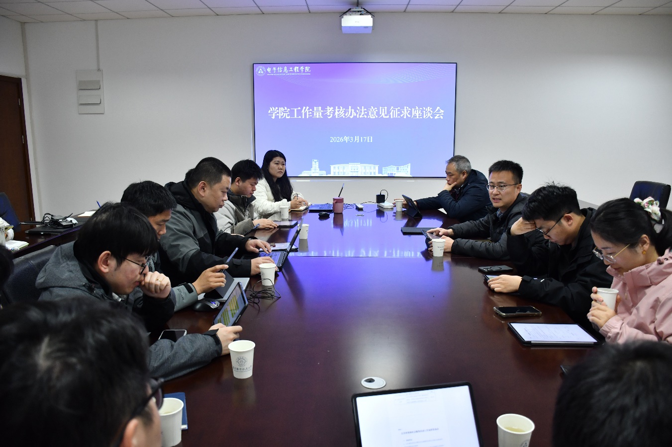 3月17日中午,学院召开第三次教师基本工作量考核办法意见征求座谈会。院长助理毕辉、学院新进教师代表、机关相关人员参会。会议由毕辉主持。