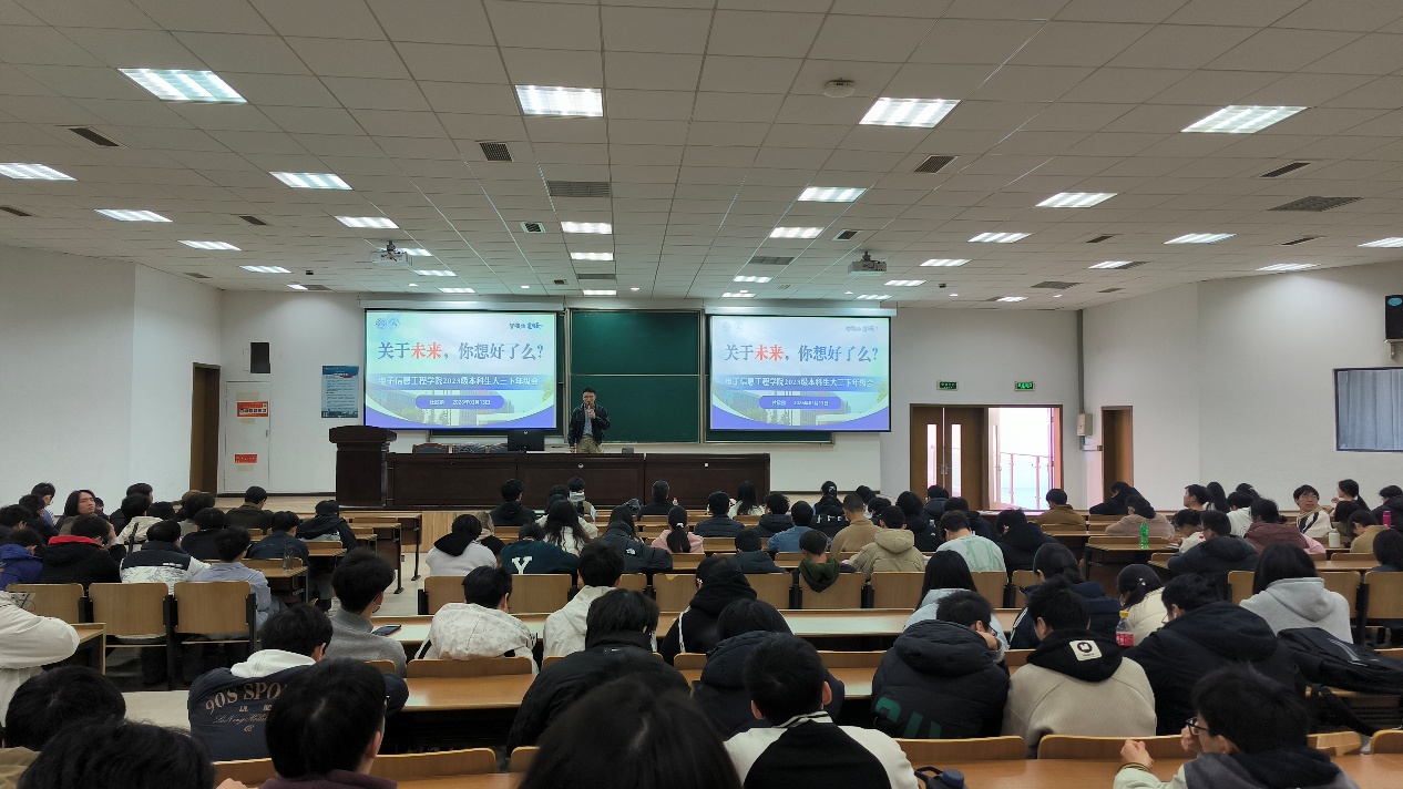 为进一步引导打飞机 2023级学生把握升学就业关键节点、科学规划未来发展路径。3月13日,打飞机 在将军路校区召开2023级本科生年级大会暨升学与就业规划月讲评,学院副院长李茁、新国大苏州研究院教师代表出席,2023级全体本科生参加本次活动,活动由辅导员杜欣鹏主持。