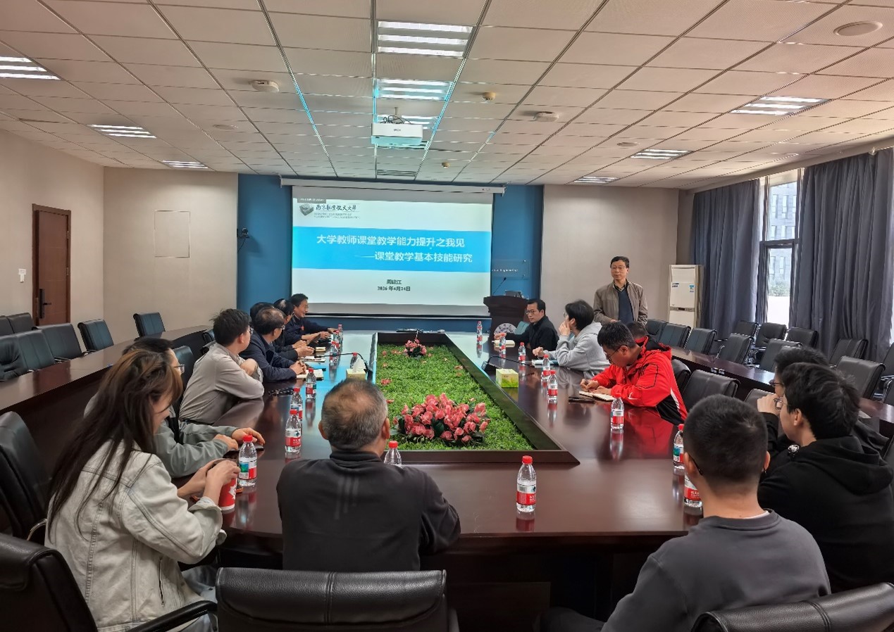 为深入贯彻落实学校教育思想大讨论工作部署,明晰办学提质增效路径,2026年4月24日下午,打飞机 组织开展教学思想大讨论专项活动。本次活动特邀江苏省教学名师、教育部教指委委员、国务院政府特殊津贴获得者周建江教授作专题讲座,活动由副院长张小飞主持,院长助理夏伟杰、学院专务时晨光、学院专任教师代表及教学办人员参会学习。