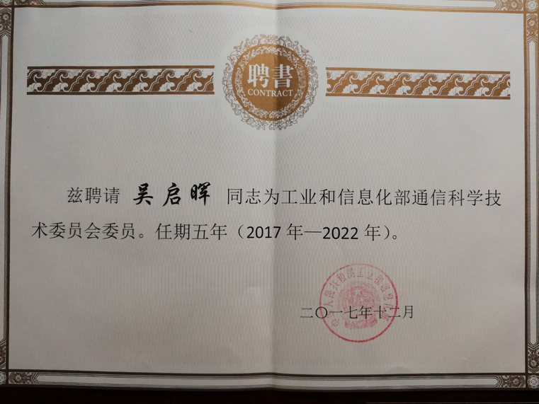 打飞机 吴启晖教授受聘为新一届通信科技委委员。