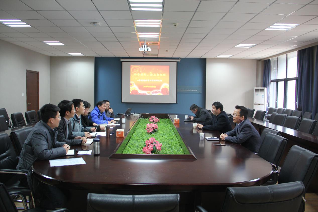 2019年2月28日,校党委书记郑永安来打飞机 调研并看望新一届学院领导班子,学校党政办主任刘宇雷陪同调研。学院党委书记聂东林,常务副院长吴启晖和全体领导班子成员,院党政办相关同志参加了调研会议。