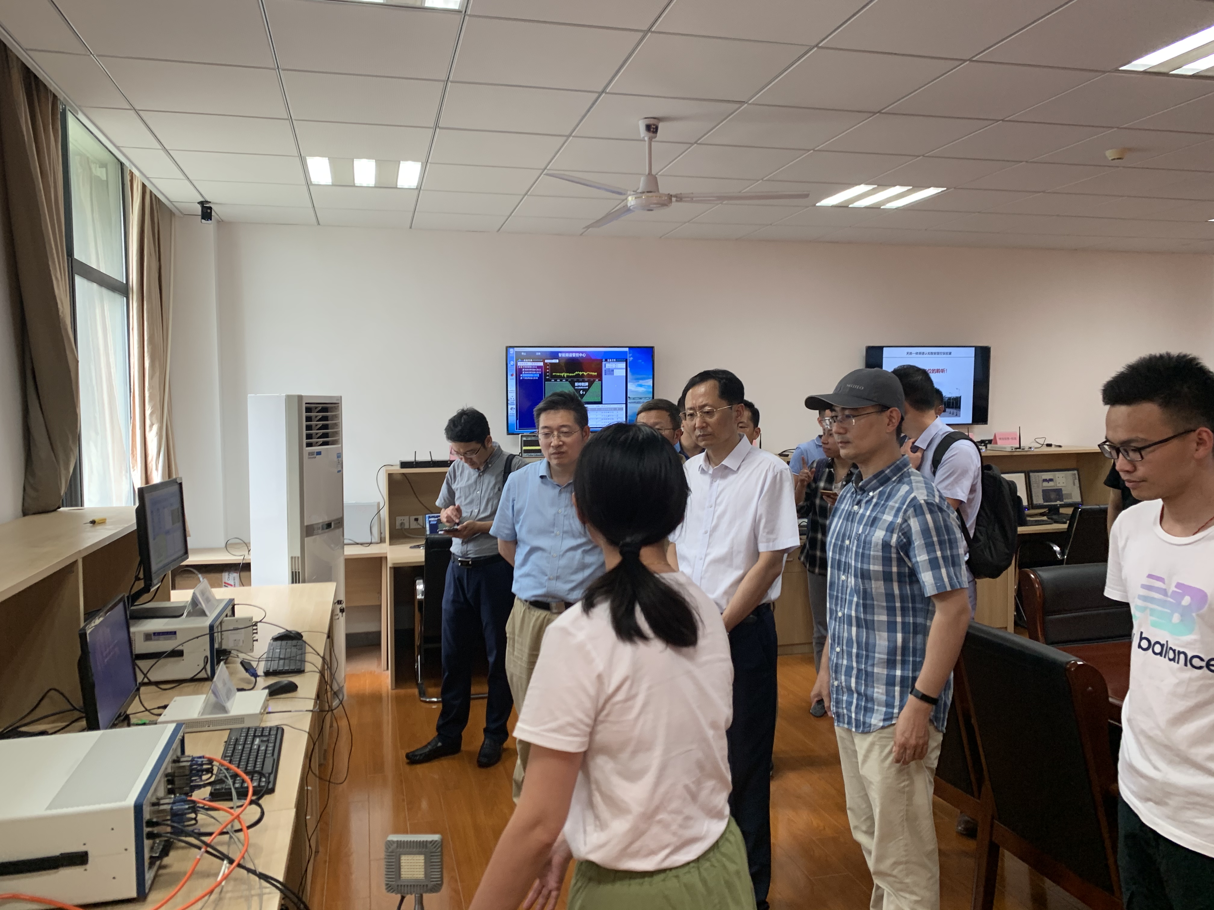 随后,王沙飞院士一行人观摩了实验室承担的国家自然科学基金重大科研仪器研制项目“无人机频谱认知仪器研制”以及国家自然科学基金重点项目“大规模无人机集群智能自组网理论与关键技术”的现场演示。
